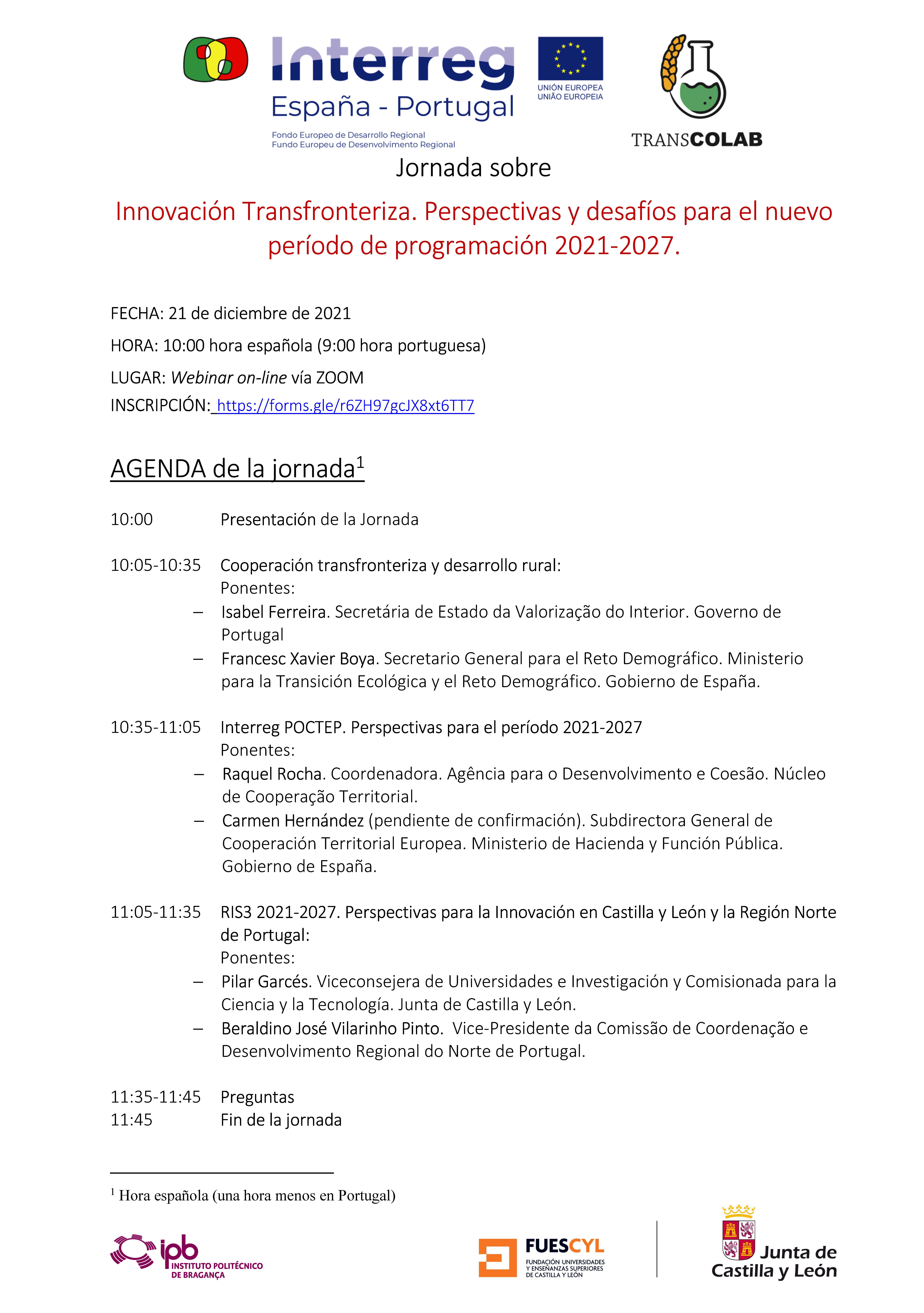 "Jornada sobre Innovación Transfronteriza. Perspectivas y desafíos para el nuevo  período de programación 2021-2027".